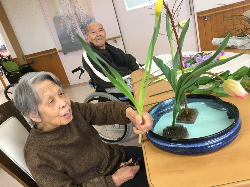 他のご入居者も生け花をご覧になって喜ばれるのを見て、