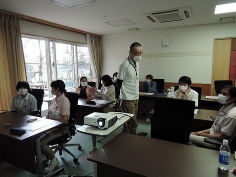 本日入職した5名にとっては、午前中のオリエンテーションに続く研修となり、普段現場で動いていることが多い職員は「腰が痛い・・」と言うなど、結構ハードな一日となったようです。